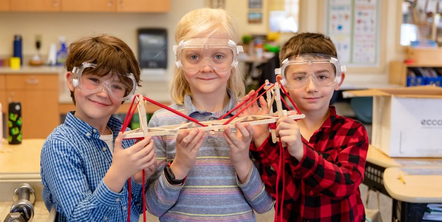 To culminate a unit on bridges, second graders designed, built, and tested bridges made out of popsicle sticks and wood glue. They also built models of one of the four types of bridges they learned about this fall and tested them to determine which was strongest. Second graders also learned about the indigenous peoples of Massachusetts and used a combination of craft and natural materials to design a wetu or a longhouse. “When you connect curriculum with hands-on problem-solving activities, it deepens and enriches the learning,” says Head of Primary School Katie Knuppel.